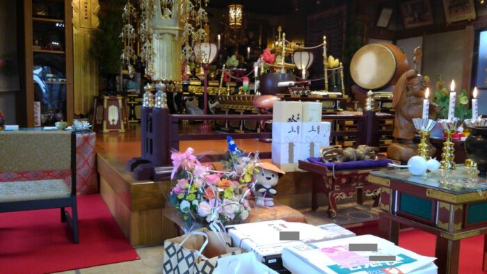 聞くところによると相談するときに住職が座られる座布団の真横に飾られているそうです。