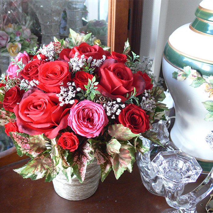 アーティフィシャルフラワー(高級造花):バラ、グランベゴニア、かすみ草、グリーン