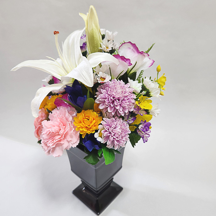 普段家を空けたり生花を飾ることが難しい方にアーティフィシャルフラワーのお供え花喜んでいただいておりますが、猫ちゃんたちにもいたずらされないというのはいいですね!